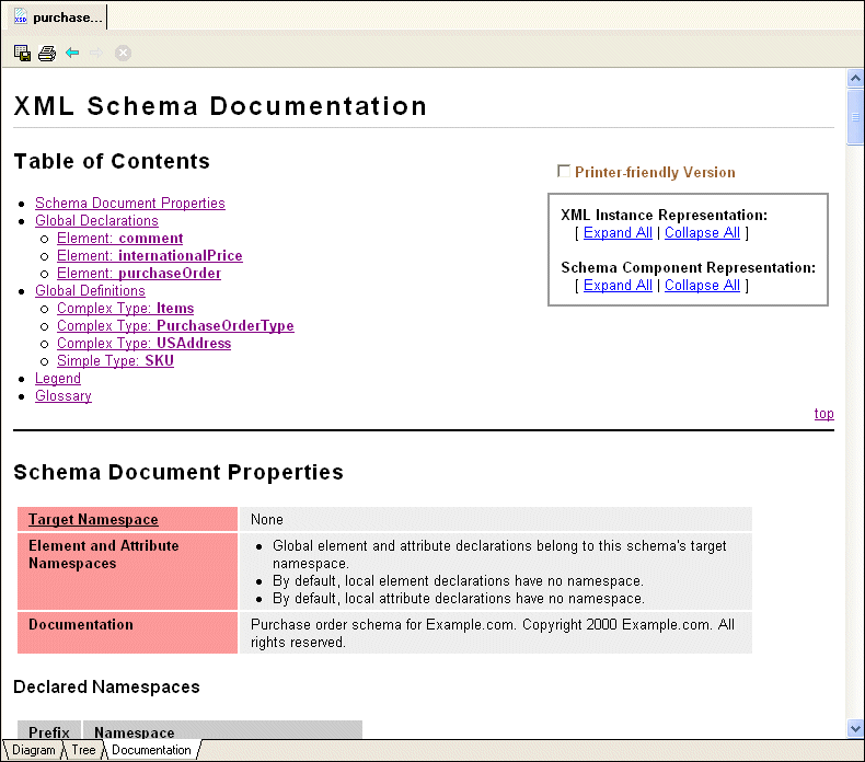 Figure 292. XML Schema Documentation Displayed Using XS3P Stylesheet