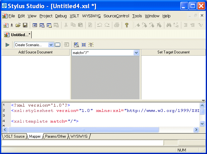 Figure 47. XSLT Editor Mapper Tab for a New Stylesheet