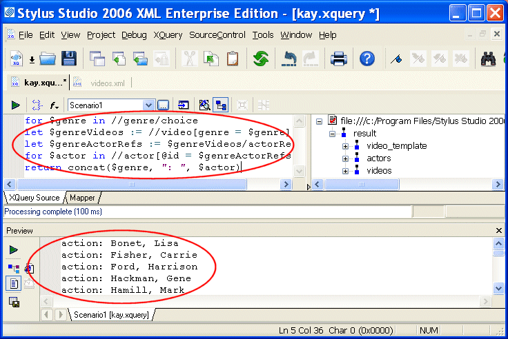 An XQuery Primer.) Here's the output from Stylus Studio: