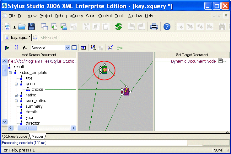 Add Source Document and add your source document(s). Our last XQuery would look like this in the XQuery Mapper: