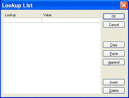 You can define lookup lists only for fields in rows for which a match pattern (even a blank match pattern, as is the default) exists. Finally, you can paste comma- and tab-delimited text directly into the lookup list. This allows you to easily reuse existing lookup tables without having to re-enter text. To define a lookup list: