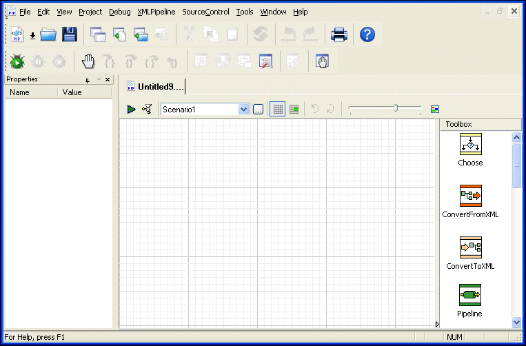 When you create an XML pipeline, Stylus Studio displays a new .pipeline document in the XML Pipeline Editor. The document has a name of untitledn.pipeline, where n is a unique number.