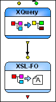 They are created automatically when an XQuery or XSLT document that specifies post-processing is dropped directly onto the XML pipeline canvas. You can also create one by dragging the XSL-FO icon from the s. The only property you can specify for an XSL-FO node is its name. Input PortXSL-FO nodes have a single input port that you use to specify the XML to be converted to PDF. This node expects XML defined using the FO grammar. You can specify a default value, or the value can be dynamic (the output from another node in the XML pipeline, for example). XSL-FO nodes are typically piped to XQuery and XSLT nodes, but they can be piped to any node that outputs XML using the FO grammar. Output PortsXSL-FO nodes have a single output port, used to specify what to do with the result of the transformation. Typically you use the Copy to URL property to write the output PDF to a file system, but you could also pipe it to a converter that does something with the PDF, or to a Pipeline Output node. |