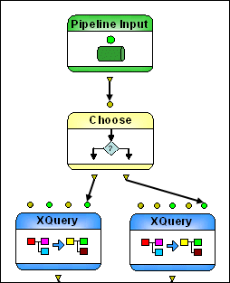 Home >Online Product Documentation >Table of Contents >Choose Nodes Choose NodesA Choose node uses XPath expressions to evaluate one or more conditions based on its input to direct the flow of XML pipeline processing. The Choose node uses XPath 2.0 to evaulate the XPath expressions defined for it.