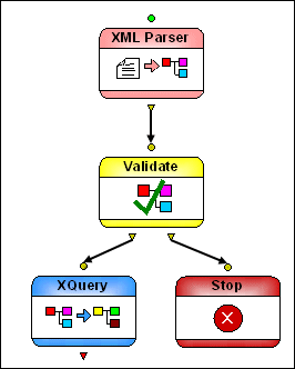 Input PortXML Parser nodes have a single input port that you use to specify the text to be converted to XML. You can specify a default value, or the value can be dynamic (the output from another node in the XML pipeline, for example). Output PortsXML Parser nodes have a single output port, used to specify what to do with the result of the transformation. You can An output must be specified in order for the node to be processed. |