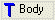 The Body glyph in the navigation bar represents the report's body. The dark blue means that the report body - the table headings and empty paragraph markers - has the editor's focus. In other words, any editing performed now - changing the text to italic, or making the background a different color, for example - would affect every object in the report body.