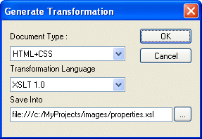 Alternative: Select Report > Generate from the menu. Stylus Studio displays the Generate Transformation dialog box.