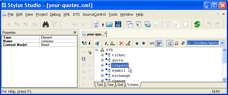your-quotes.xml, select XML > Create Schema from XML Content from the Stylus Studio menu.