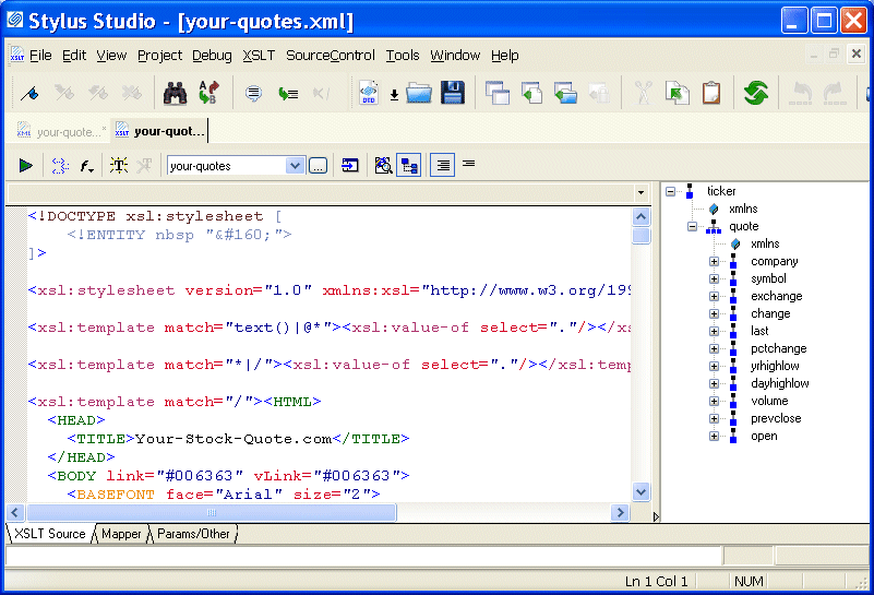 2. Double-click your-quotes.xsl. Stylus Studio displays the