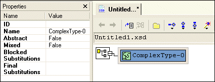 Alternatives: This action is also available from the XMLSchema > Grid Editing menu. Stylus Studio displays a representation for the new node in the diagram. The complexType properties appear in the Properties window.