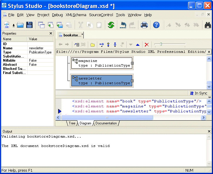 8. Select XMLSchema > Validate Document from the menu to validate the XML Schema document you created.