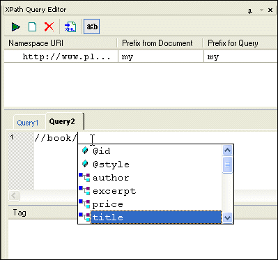 Figure 281. Sense:X Auto-completion in XPath Query Editor