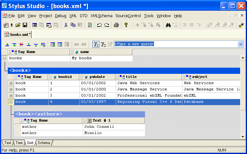 Figure 114. Grid View of books.xml