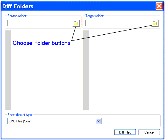 This section covers the following topics: FeaturesThe Diff Folders dialog box has several features that make it easy to diff folders and the XML documents they contain: