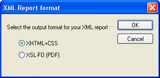 Home > Online Product Documentation > Table of Contents > Choosing a Report Format Choosing a Report FormatWhen you create an XML Report in Stylus Studio, you need to specify the format you want for the finished report - HTML (XHTML+CSS) or PDF (XSL-FO). Stylus Studio can generate XQuery or XSLT code for either format. You specify report format using the XML Report Format dialog box, which appears when you create a new XML Report in Stylus Studio: