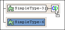 • To add an existing annotation or simpleType to the list or union, drag the annotation or simpleType to the list or union, and drop it there, as shown in Figure 265, which shows SimpleType-6 being added to the union SimpleType-3.