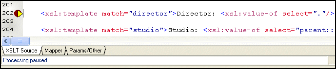 1. In the XSLT Editor, click in line 202. Line numbers appear in the lower right corner of the XSLT Editor window. Line 202 starts with