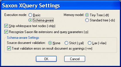 The Saxon XQuery Settings dialog box appears.