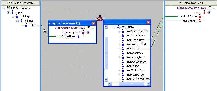 Home > Online Product Documentation > Table of Contents > Mapping wscall Functions Mapping wscall FunctionsIn most typical XQuery mapping operations, you map source and target document nodes to function block ports, as shown in Figure 351.