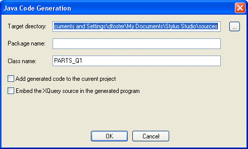 c:\temp\myJavaCode, for example. If the directory you name does not exist, Stylus Studio creates it when you run the Code Generation wizard.
