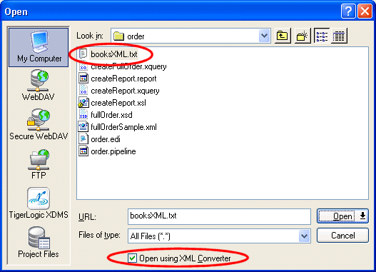 2. You select the file you want to open, and then select the Open using XML Converter check box.