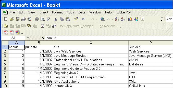 Note that when you use this feature, the entire table is copied - column headings (element and attribute names) are not distinguished from cell contents (element and attribute values) in the spreadsheet. To copy a tab-delimited table to the clipboard: