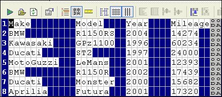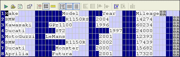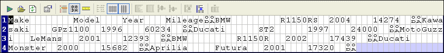 Home > Online Product Documentation > Table of Contents > Converting the Region Type Converting the Region TypeStylus Studio's Convert to XML interprets regions with CR/LF control characters as line-oriented regions. There might be occasions, however, when you want to change the region type from line-oriented to fixed-width, or vice versa. This section describes the tools you can use to change a region from one type to another. Consider the following file fixed-width file: