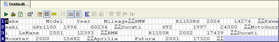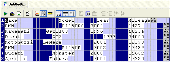 Home > Online Product Documentation > Table of Contents > Adjusting Fixed-Width Regions Adjusting Fixed-Width RegionsWhen line-oriented regions, like the one shown in Figure 152, are converted to fixed-width regions, it is sometimes necessary to define the row length - Stylus Studio uses a default row length of 80 characters for displaying fixed-width files.