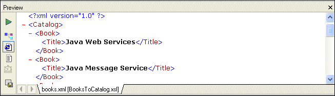 BooksToCatalog.xsl stylesheet to re-display the XSLT Editor.