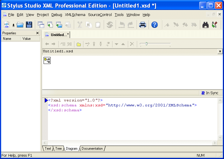 Stylus Studio updates the diagram and the XML Schema in the text pane.