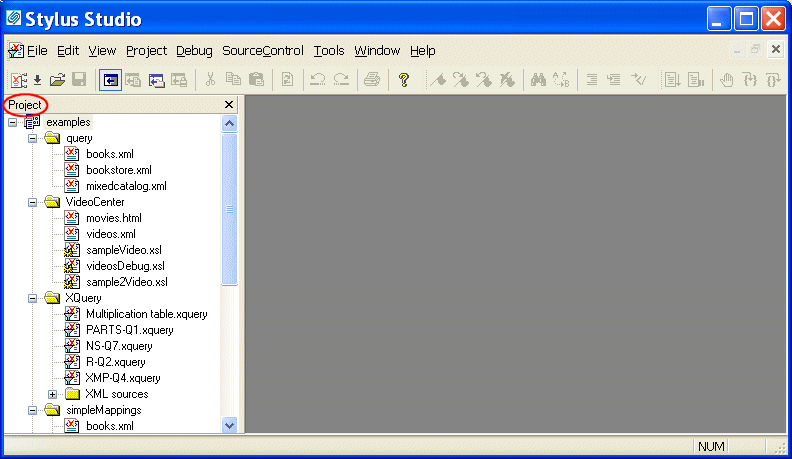 All files that can be opened in Stylus Studio are now in the new Stylus Studio project. The default name of the project is