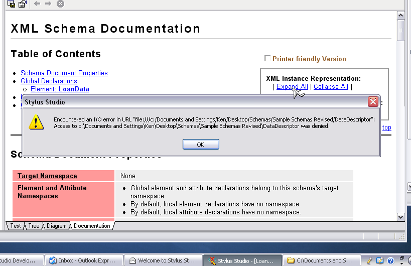 Encountered an I/O error in URL <location of Schema directory>: Access to <location of Schema directory> was denied.<br>