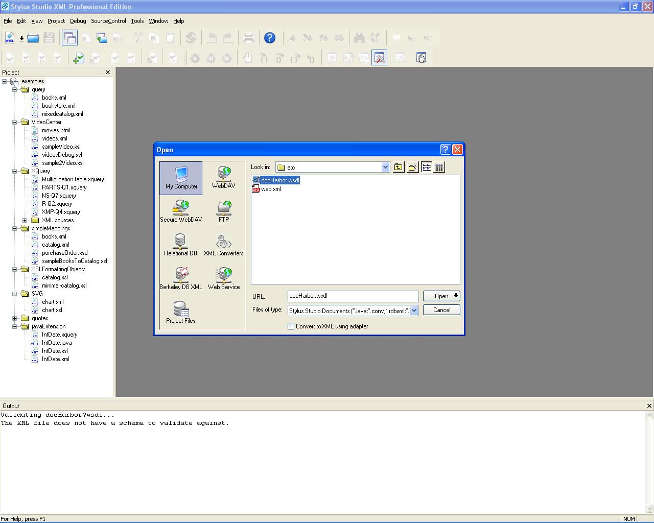 Subject:Stylus Studio cannot open a WSDL for edition as a simple XML file Author:Ivan Pedruzzi Date:12 Nov 2004 12:36 PM