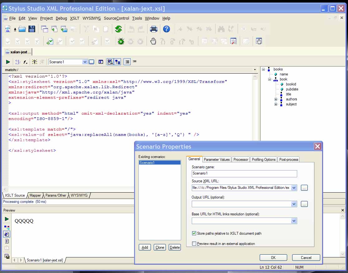 stylesheet; you need to select XalanJ in scenario properties.