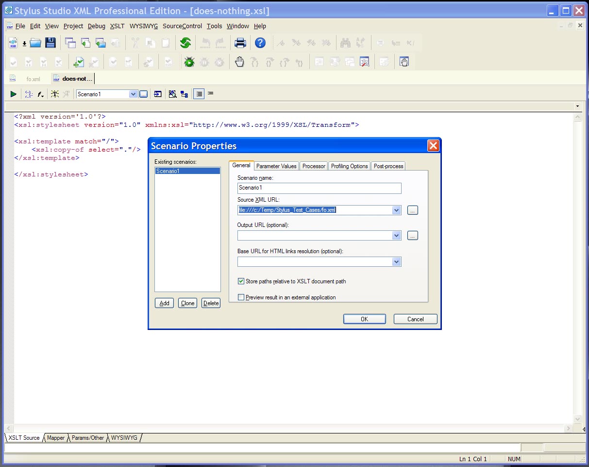 the XSLT editor and configure the scenario properties (only one time).<br>